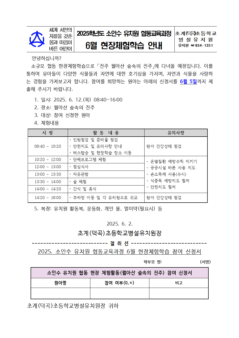 2025학년도 소인수 유치원 협동교육과정 6월 현장체험학습 안내